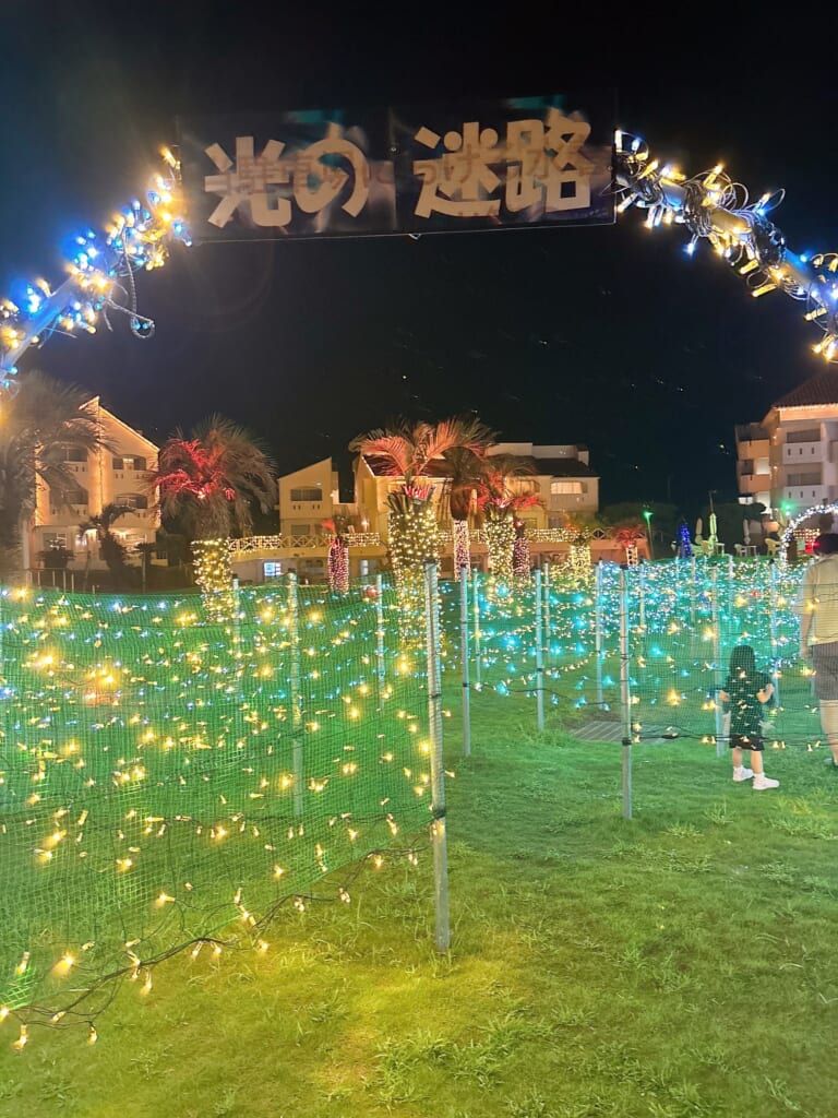 光の迷路を見つけたので子供と鬼ごっこをして遊びました。