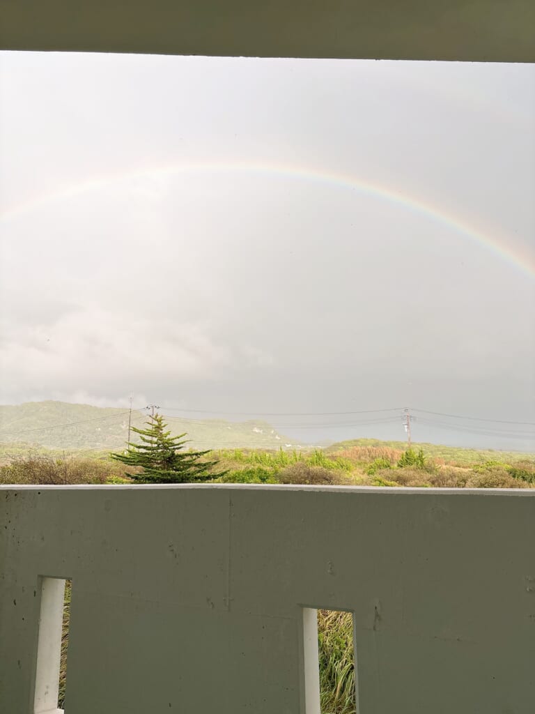 ホテルは南房総のリゾートホテルに行きました。なかなか老舗のホテルらしく、レビューを見て心配してましたが、思ってたより部屋も綺麗でよかったです。そしてちょうど窓から虹が…!