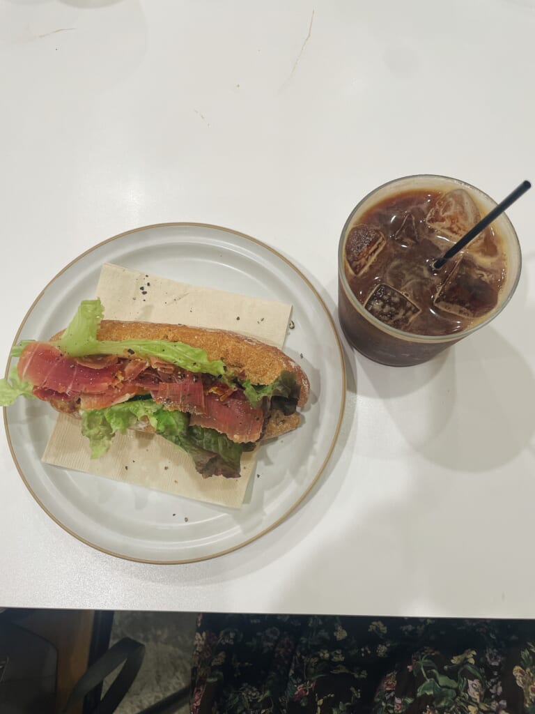 そのあとはなんばパークスにあるカフェで、生ハムサンドを食べました。