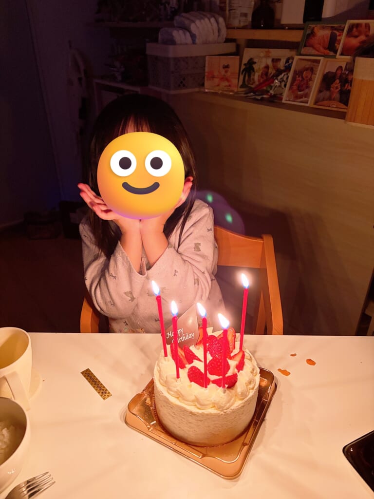 そして誕生日当日!「やっとこの日がきたよ~」と朝から子供は言ってました。誕生日ケーキはいちごの入ってないショートケーキというなかなか難しいリクエスト笑。仕事帰りに探しに行きました。しかし予想通りそんなショートケーキはなく…普通のショートケーキを買って帰りました。
